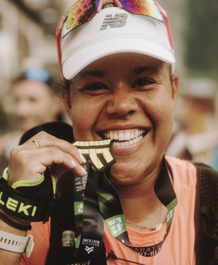 Being in Chamonix was a huge draw for Juliette to participate in the race series – the views and mountain scenery are spectacular, she says. But the biggest pull to participate for Juliette was visibility for people of colour. “I want to focus on improving diversity on the trails,” she says. “From a people of colour perspective – and a people from different backgrounds perspective – we’re not anywhere near diversity yet. And so if I can help be a visible presence on days like today and give other people a model to look at, that’s ultimately what I’m aiming for.”