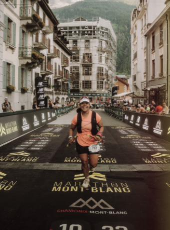 Julia Maris, a runner from Munich, Germany, participated at the Marathon du Mont Blanc alongside other members of MovingMinds – a Munich-based run club she founded earlier this year. Julia says that living in the city centre of Munich made training for a trail race somewhat difficult, due to the lack of trail access, but she and other club members still prepared as best they could within the city. MovingMinds is centred around diversity and celebrating different cultures – and a main principle of the club is promoting ‘run-life balance’. “We meet up at a bar, actually, and it’s just like a ‘European summer night’ type of thing,” she says.