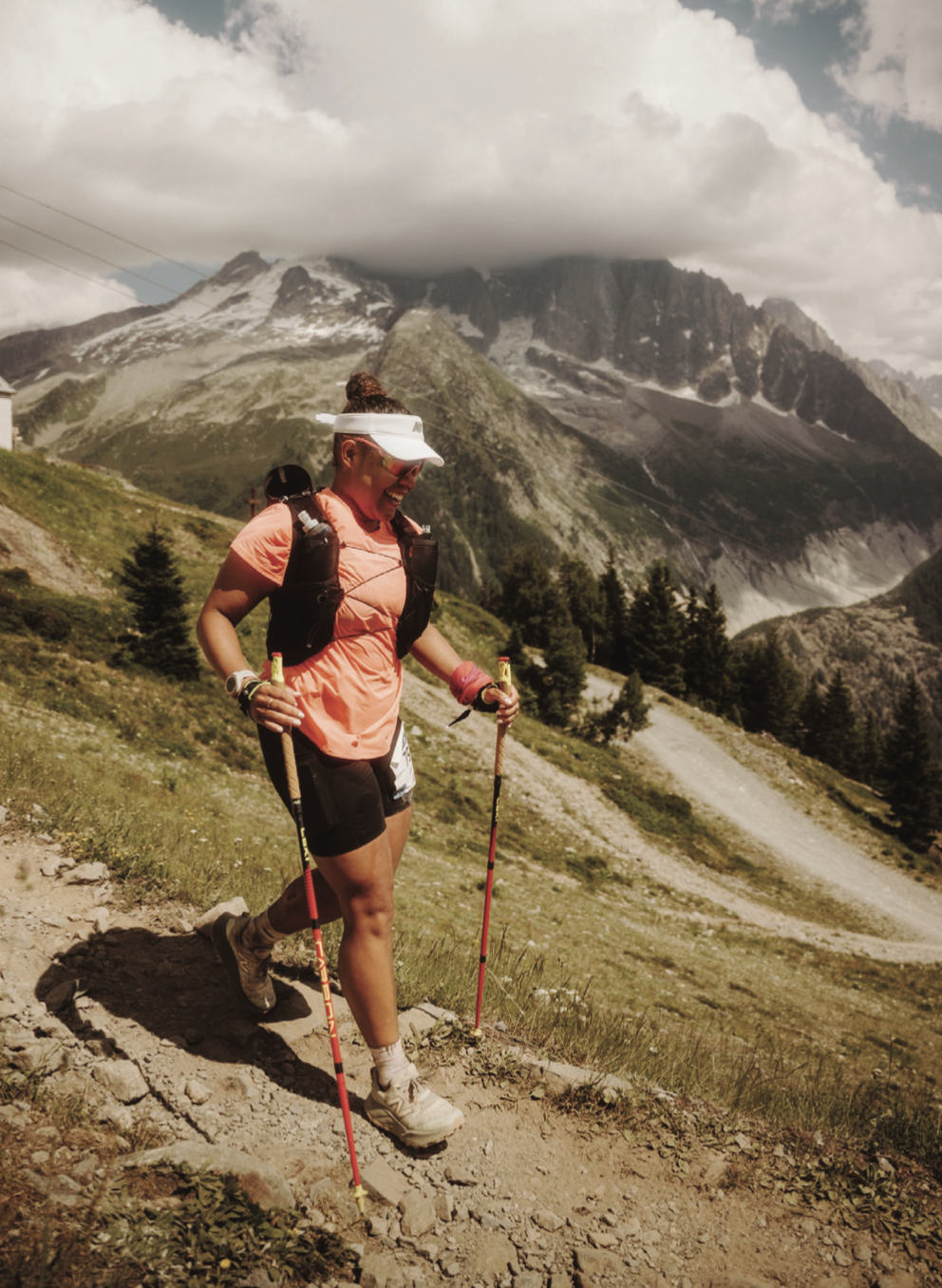Julia is usually a long-distance road runner who thrives in the half-marathon and marathon distance, so trail racing – and trail running in general – were both new to her when she showed up at the start line of the Marathon du Mont Blanc 10K. She hadn’t slept much the night before – perhaps due to a couple of pre-celebratory glasses of wine, she admits. “I didn’t know how the challenge was going to be for me, I was just trying to go with the flow.”