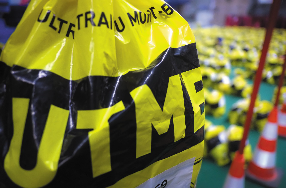 Of course in some years, wet weather has meant that after the runners have changed at the mid-point, the volunteers have to transport thousands of bags full of wet kit through the mountains back to Chamonix.